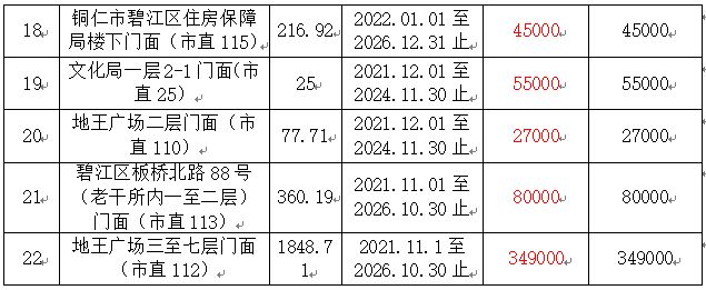 8、碧江區(qū)住房保障局樓下門面1間,面積:216.92㎡,租賃期:5年;