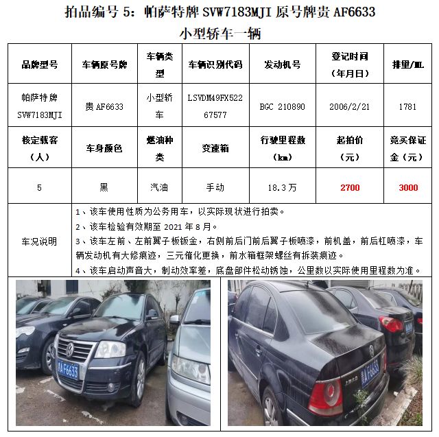 捷達(dá)牌FV7160GiF E3小型轎車3輛、榮威牌CSA7181AB小型轎車3輛、帕薩特牌SVW7183MJI小型轎車1輛、別克(BUICK)牌SGM6512GL8小型普通客車1輛、廣州雅閣HG7240轎車1輛、邁騰牌FV7187T小型轎車1輛,共計(jì)10輛車。