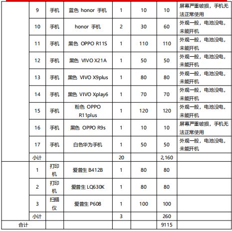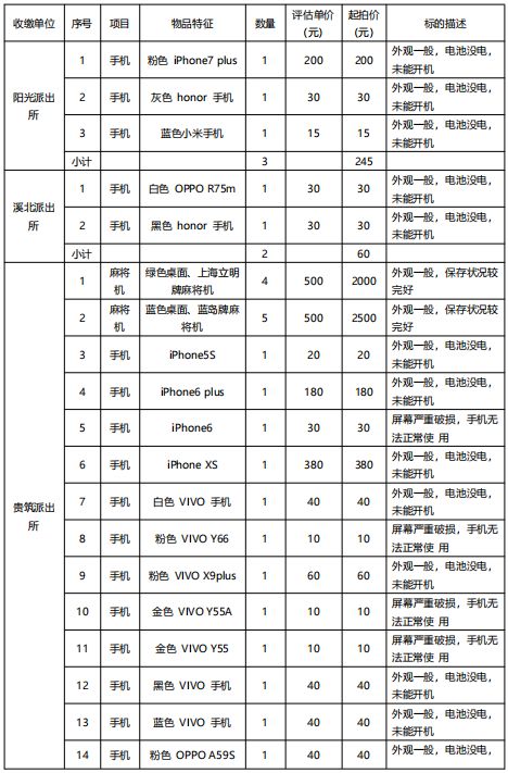 該批標(biāo)的包含各類品牌手機(jī)52部;麻將機(jī)9臺(tái);打印機(jī)3臺(tái)。(詳見(jiàn)后附手機(jī)、麻將機(jī)、打印機(jī)清單)。
