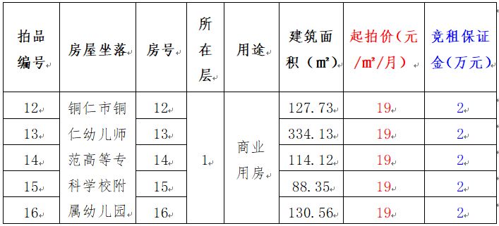 拍品編號12-16號:銅仁幼兒師范高等專科學(xué)校附屬幼兒園12至16號商業(yè)房地產(chǎn)