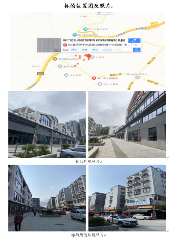 標(biāo)的位于銅仁幼兒師范高等??茖W(xué)校北門處,所在建筑物總樓層為1層,北朝向。周邊有愛國路等城市主干道,道路通達(dá)良好,有公交線路,交通狀況良好;供排水、電力、通訊和道路等基礎(chǔ)設(shè)施條件相對完善;有銅仁第一中學(xué)、銅仁人民醫(yī)院等公共配套設(shè)施相對齊全;周邊環(huán)境較好,規(guī)劃布局較好,人口密度較濃,物業(yè)管理較好。
