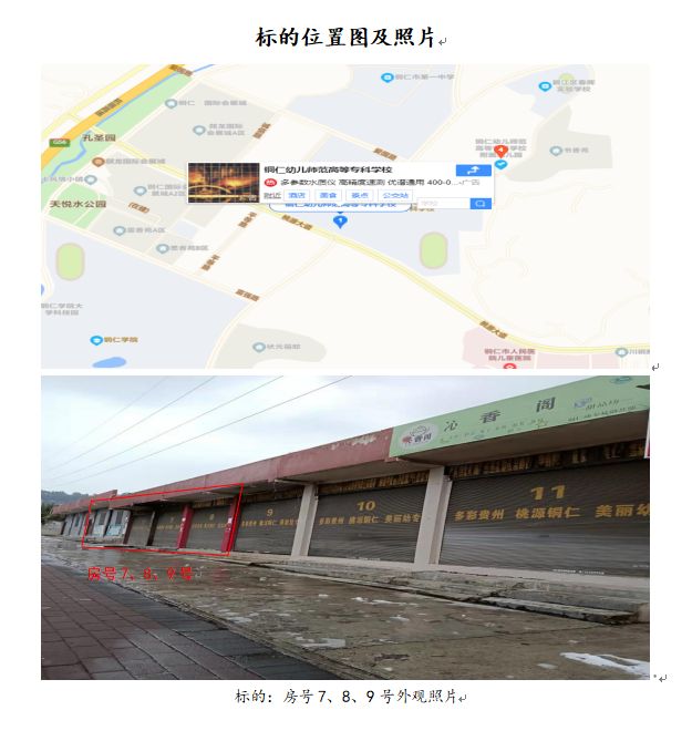 拍品編號17-19號:銅仁幼兒師范高等??茖W(xué)校北門處7至9號商業(yè)房地產(chǎn)