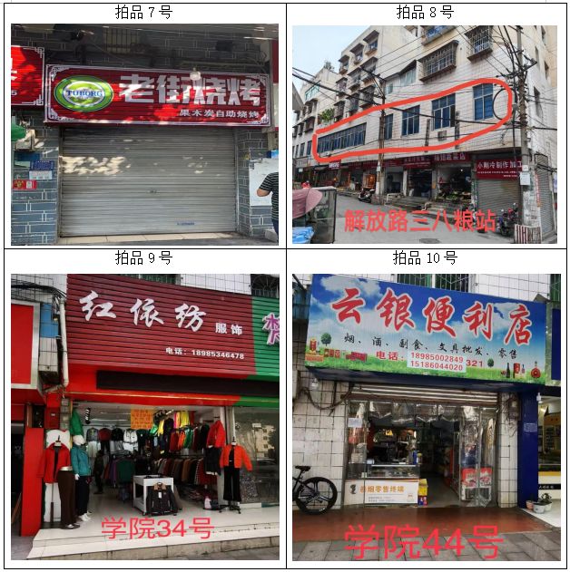 拍品9號至12號標(biāo)的:位于清水大道銅仁附中對面,面積均為:27.5㎡,租賃期均為3年(2023.5.1至2026.4.30),附近有車站、醫(yī)院、銀行、酒店、超市、學(xué)校等,交通便利,人流量大。