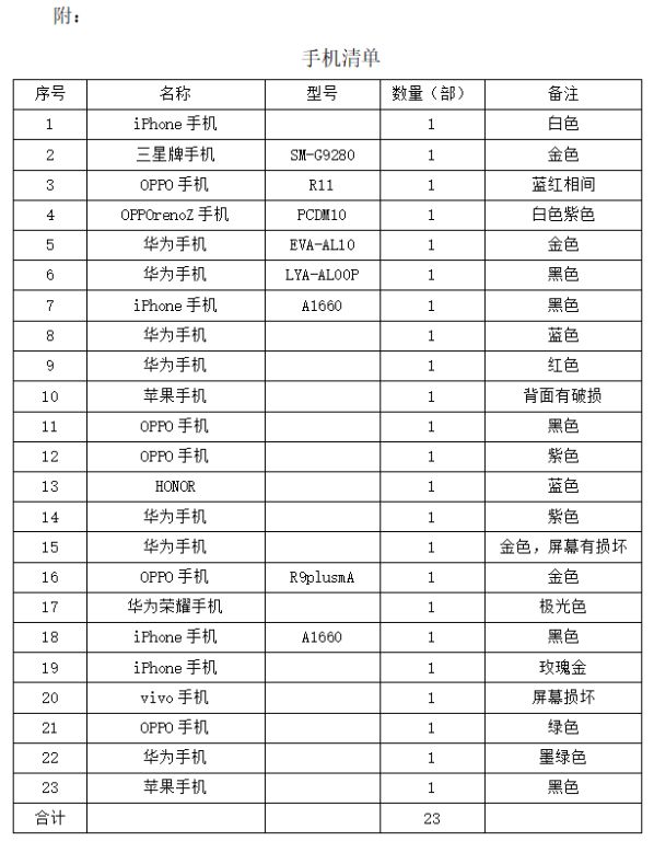 拍品編號(hào)1號(hào):手機(jī)23部(整體拍賣(mài))