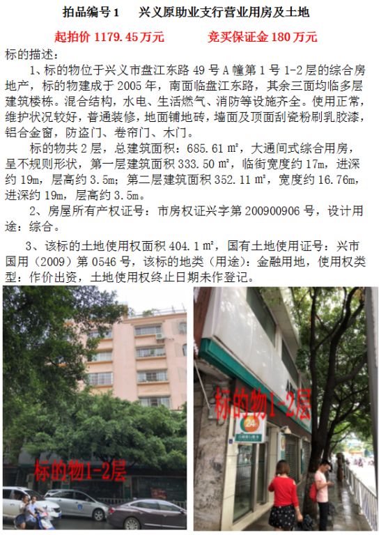 一、興義原助業(yè)支行營業(yè)用房及土地,建筑面積685.61㎡;