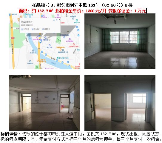 8、都勻市劍江中路163號(62-66號)8樓住房(右)3年租賃權(quán)(面積約132.7㎡);