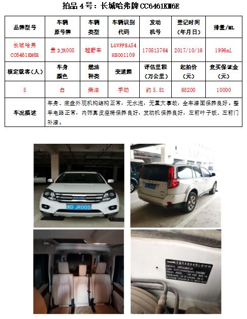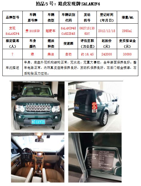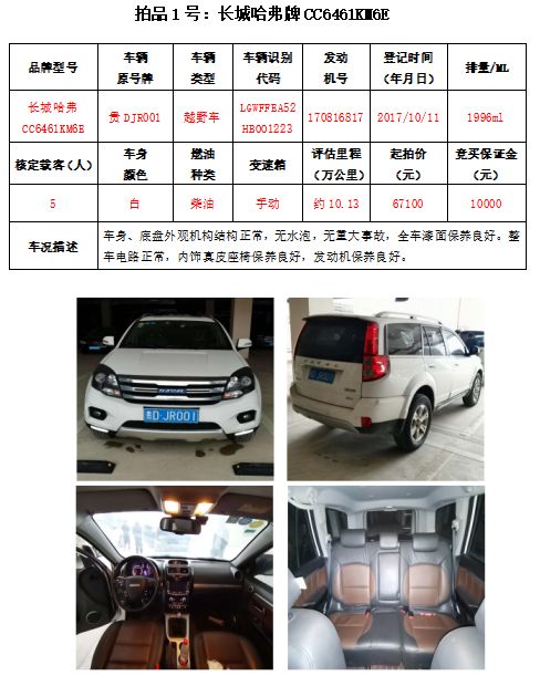 哈弗、路虎、柯斯達(dá)牌車輛拍賣信息
