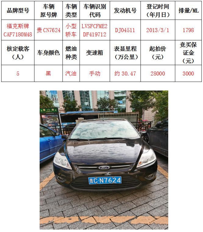 拍品編號(hào)1:福克斯牌CAF7180M48小型轎車一輛