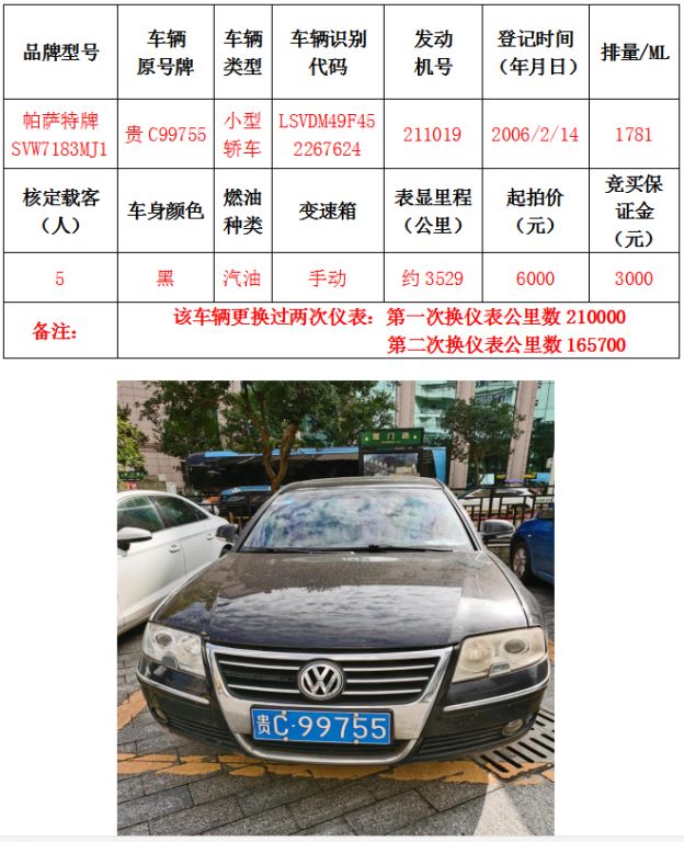 拍品編號(hào)3:帕薩特牌SVW7183MJ1轎車一輛