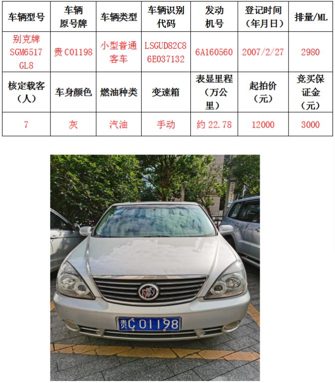 拍品編號(hào)4:別克牌SGM6517 GL8小型普通客車一輛