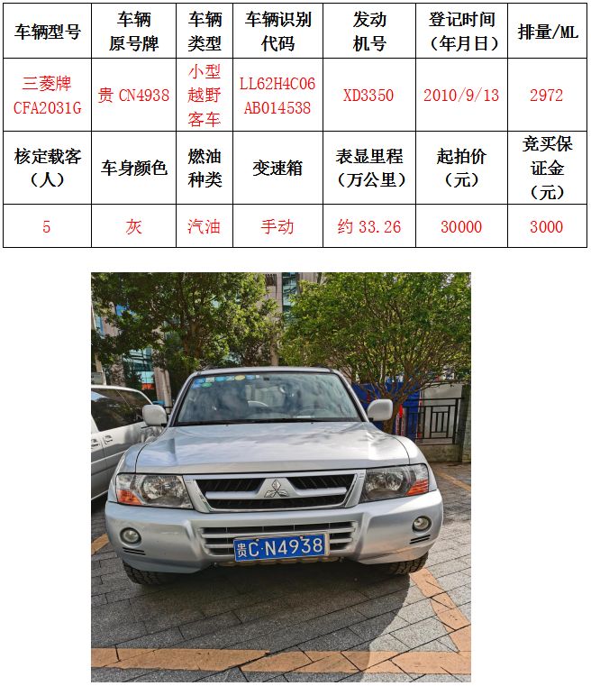 拍品編號(hào)5:三菱牌CFA2031G小型越野客車一輛