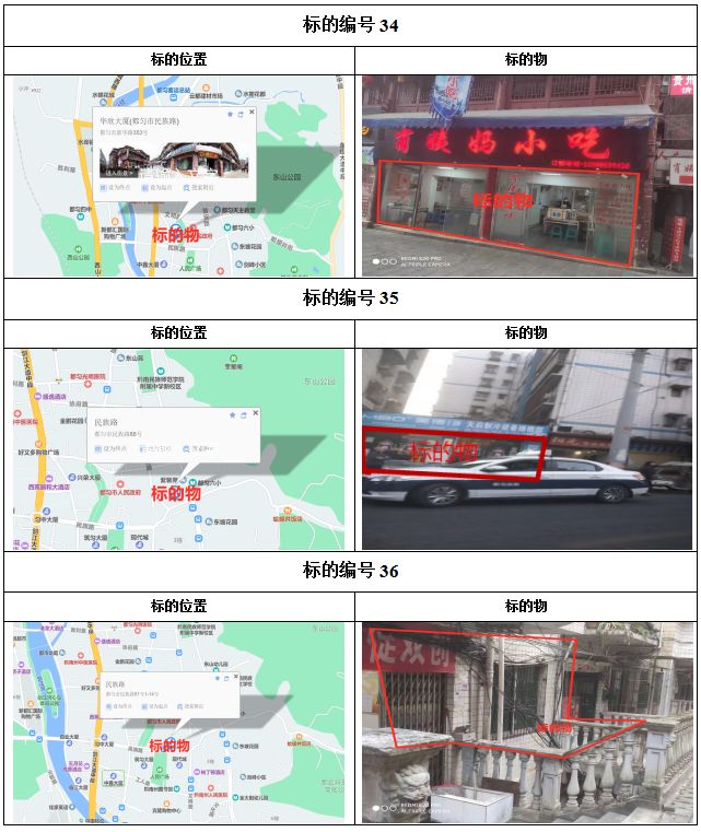 2021年1月28日上午9:00拍賣標的共計40個標的,其中:1—34號標的目前均為租賃狀態(tài),如承租人參與競租,其享有同等價位優(yōu)先購買權,其余35—40標的為閑置狀態(tài)。