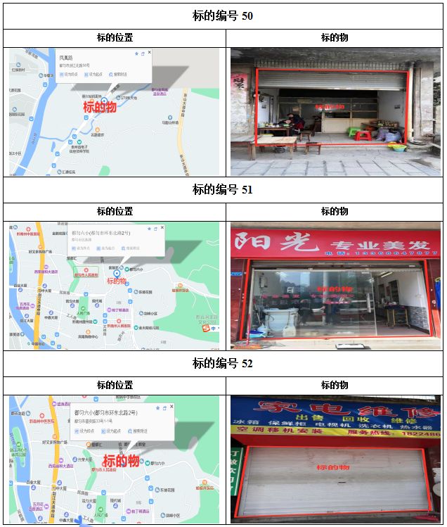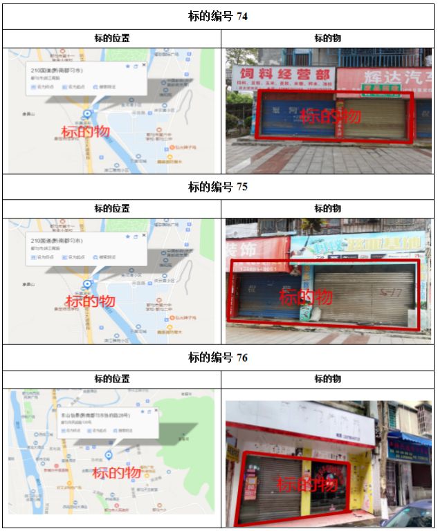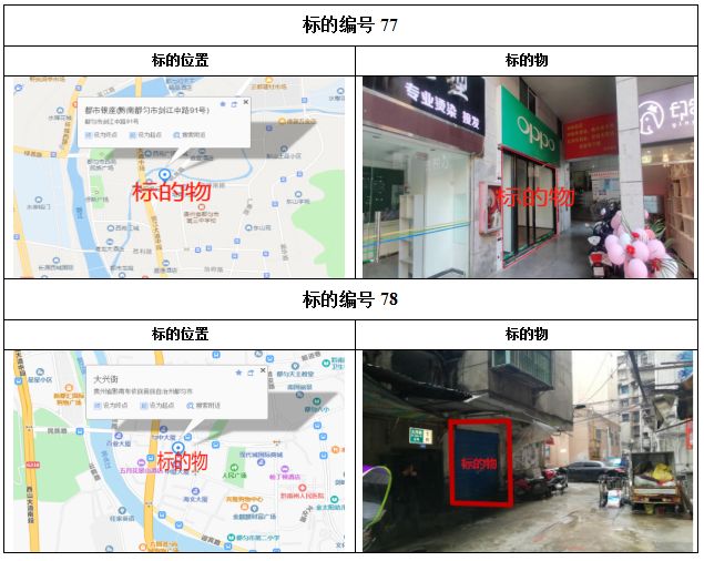 2021年1月28日下午14:00拍賣標的共計38個標的,其中:41—72號標的目前均為租賃狀態(tài),如承租人參與競租,其享有同等價位優(yōu)先購買權,其余73—78標的為閑置狀態(tài)。