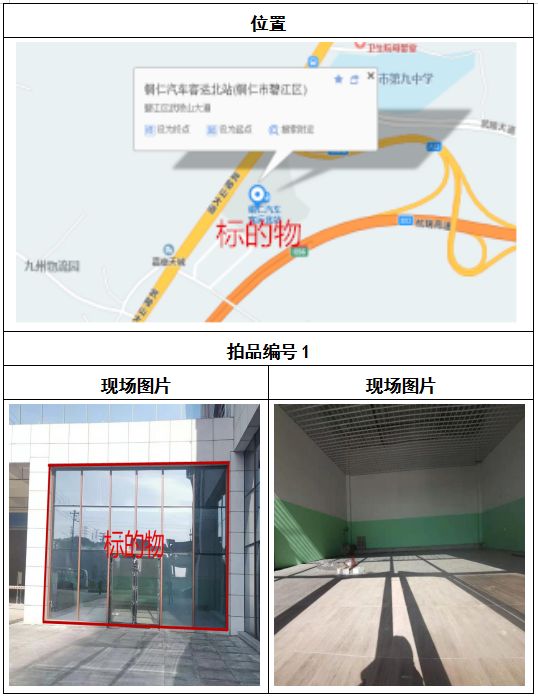 拍品1號(hào)-9號(hào)標(biāo)的位于銅仁碧江區(qū)川硐汽車(chē)客運(yùn)北站A區(qū)進(jìn)站口負(fù)一層1-9號(hào)的商業(yè)房地產(chǎn),位于銅仁市中心以北,銅仁汽車(chē)北站安置旁,建筑面積分別為:81㎡、121.5㎡、121.5㎡、121.5㎡、81㎡、121.5㎡、121.5㎡、121.5㎡、121.5㎡,租賃期5年,該標(biāo)的位置交通便利,人流量大。