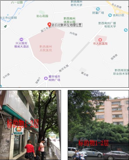 1、標(biāo)的物位于興義市盤江東路49號A幢第1號1-2層的綜合房地產(chǎn),標(biāo)的物建成于2005年,南面臨盤江東路,其余三面均臨多層建筑樓棟?;旌辖Y(jié)構(gòu),水電、生活燃?xì)狻⑾赖仍O(shè)施齊全。使用正常,維護狀況較好,普通裝修,地面鋪地磚,墻面及頂面刮瓷粉刷乳膠漆,鋁合金窗,防盜門、卷簾門、木門。