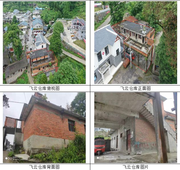 飛云倉庫,位于遵義市新蒲新區(qū)永樂鎮(zhèn)飛云村田壩組,1993年修建,磚混結(jié)構(gòu),建筑面積:約416.71㎡,土地面積:約334.93㎡,土地性質(zhì):劃拔,土地用途:倉儲,無土地使用證和房屋產(chǎn)權(quán)證。房屋危險性等級鑒定為D級。