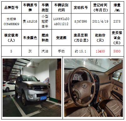 拍品編號(hào)4:長城牌CC6460KM29小型越野客車一輛