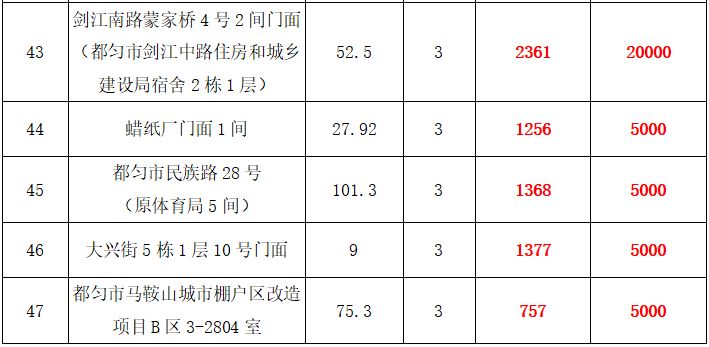 3、都勻市慧麗佳園、廣惠國際對面科技局、新華公寓、新汽車站對面、馬鞍山城市棚戶區(qū)等5處房屋3年租賃權(quán),面積約10㎡-91.84㎡;