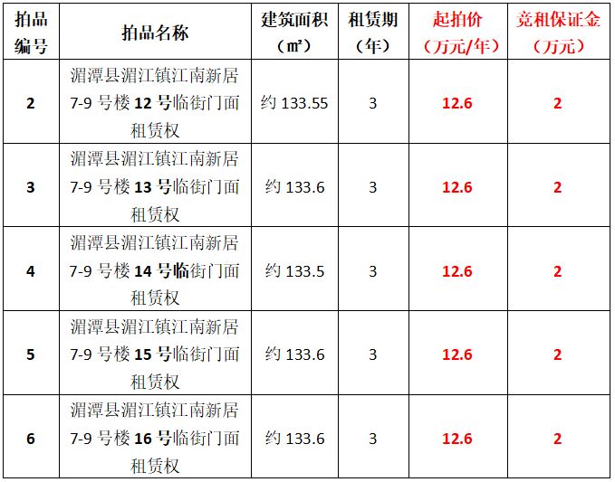 拍品2-6號 湄潭縣湄江鎮(zhèn)江南新居7-9號樓12-16號臨街門面租賃權(quán)