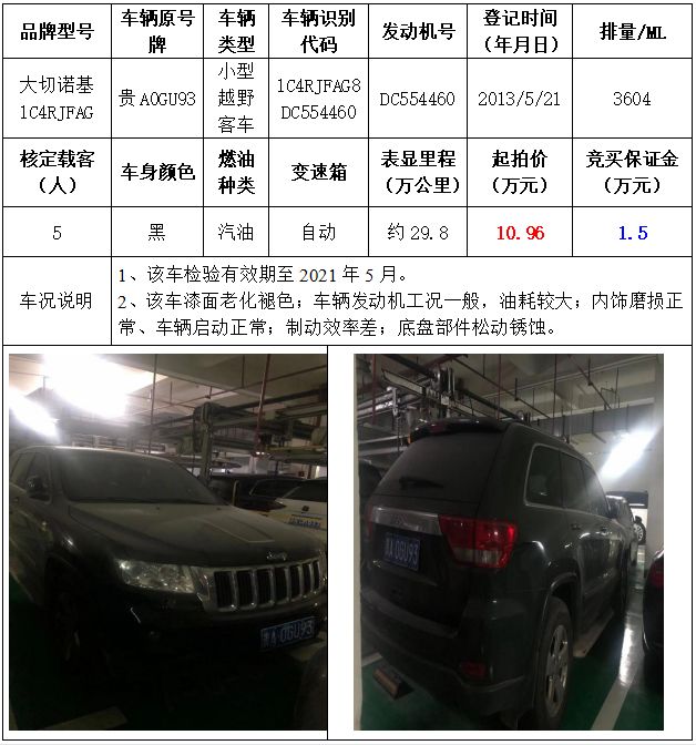 拍品編號(hào)1:大切諾基1C4RJFAG小型越野客車一輛