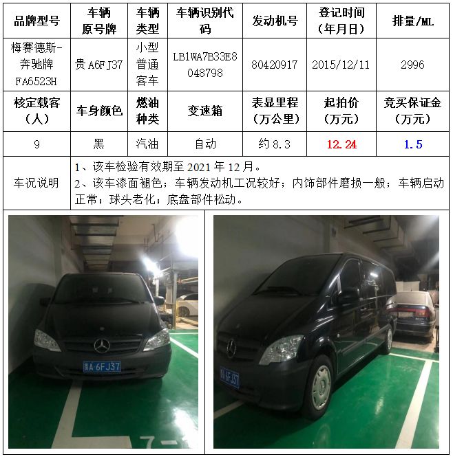 拍品編號(hào)2:梅賽德斯-奔馳牌FA6523H小型普通客車一輛