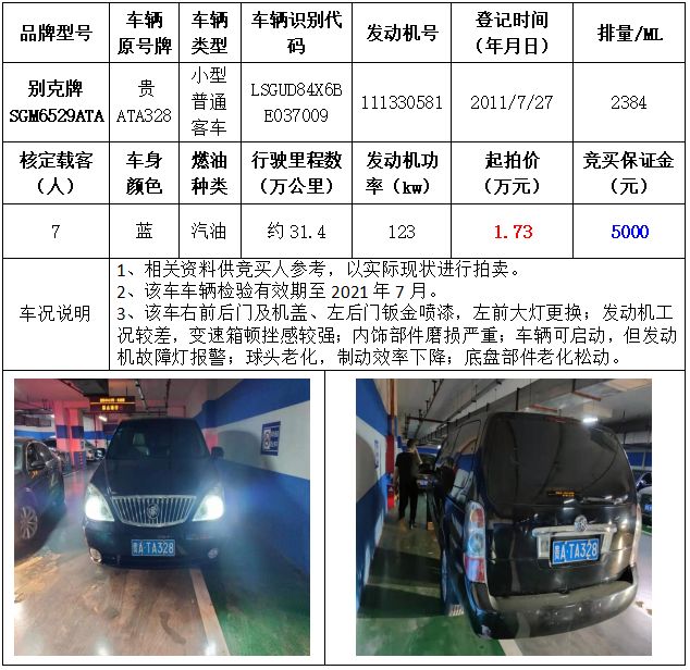 拍品編號(hào)3:別克牌SGM6529ATA小型普通客車一輛