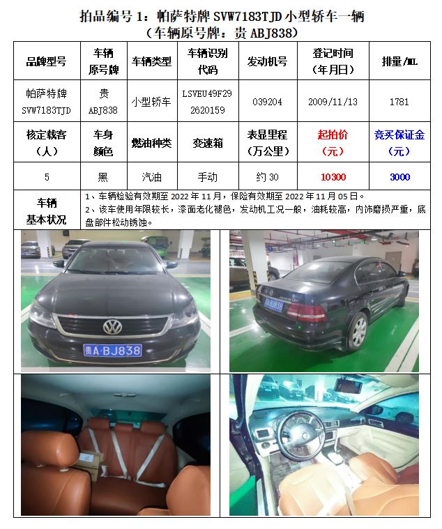 1、帕薩特牌SVW7183TJD小型轎車2輛;