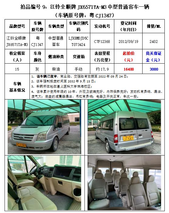 8、江鈴全順牌JX6571TA-M3中型普通客車1輛;