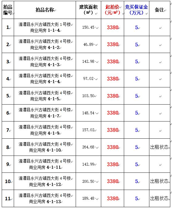 拍品1-11號:湄潭縣永興古鎮(zhèn)西大街1、4號樓商鋪