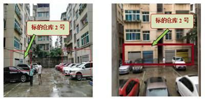 此標的東面臨洋川中路,其余三面均臨住宅樓棟。為臨小區(qū)院落的大通間式倉庫用房,臨院落寬均約4米,進深約19米,層高約2.5米。