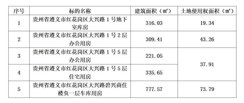 拍品編號(hào)1:貴州省遵義市紅花崗大興路地下室、辦公樓、住宅、車(chē)庫(kù)(整體拍賣(mài))