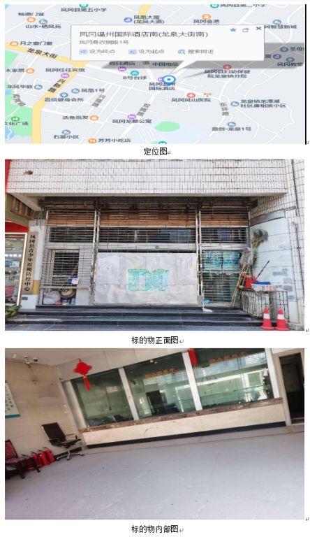 標(biāo)的坐落于貴州省遵義市鳳岡縣龍泉鎮(zhèn)環(huán)南路(原工商局綜合樓門面),房屋建筑面積:82.51㎡;房屋總層數(shù)為7層,標(biāo)的所在層數(shù)為1層,層高約3.3m;權(quán)利類型:國有建設(shè)用地使用權(quán)/房屋所有權(quán);權(quán)利性質(zhì):出讓/自建房;用途:商服用地/商業(yè)服務(wù);使用期限至:2051年08月01日;房屋結(jié)構(gòu):混合結(jié)構(gòu),目前為閑置狀態(tài)。