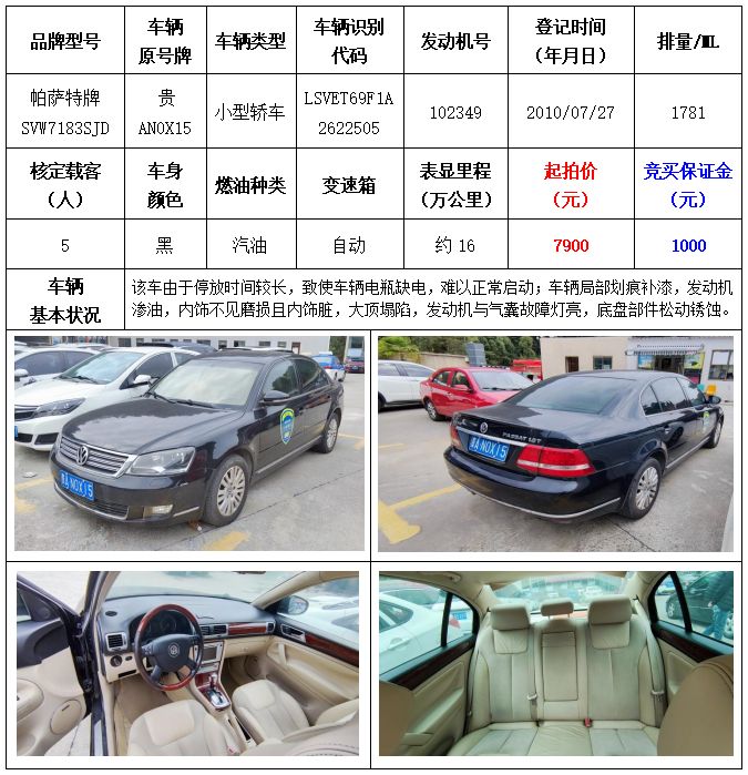 拍品編號1:帕薩特牌SVW7183SJD小型普通客車1輛