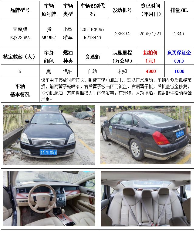 拍品編號2:天籟牌EQ7230BA小型轎車1輛