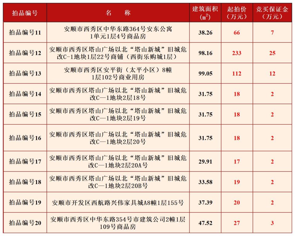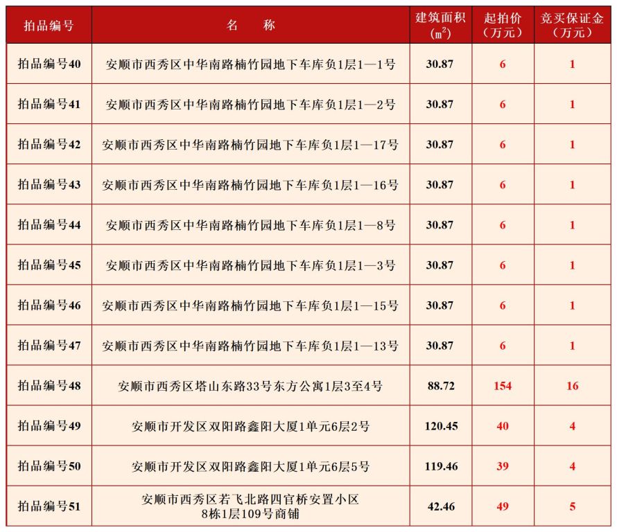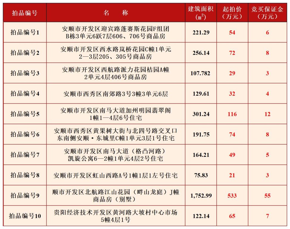 【已結(jié)束】安順市優(yōu)質(zhì)房產(chǎn)、車庫拍賣公告