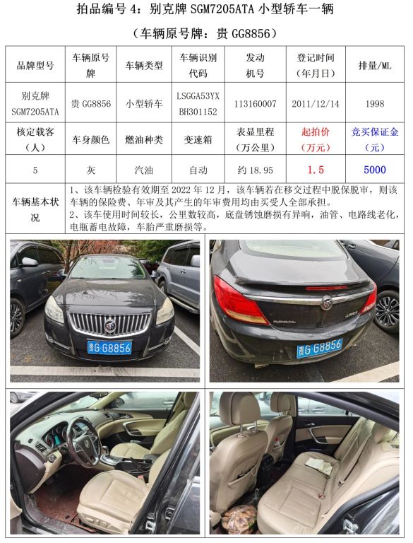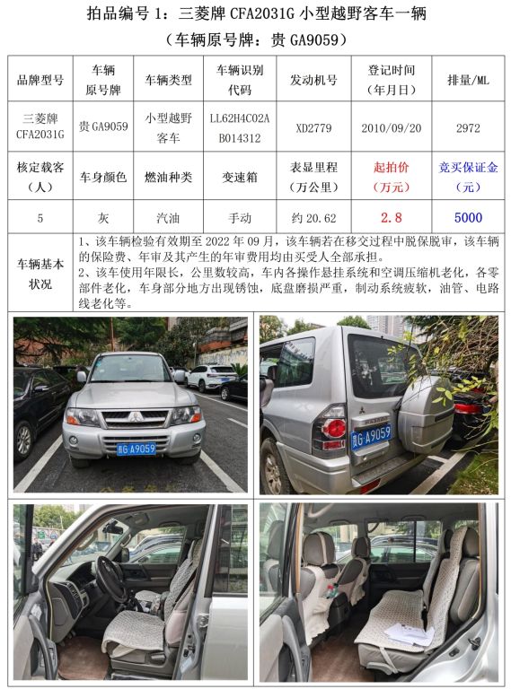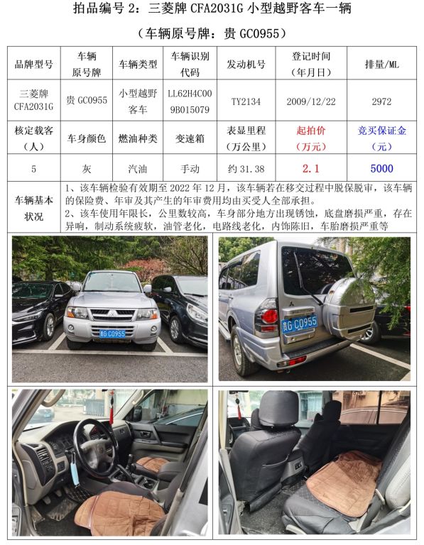 受委托,我公司定于2022年12月02日(星期五)下午14:30在中拍平臺(https://paimai.caa123.org.cn/)及安順市西秀區(qū)黃果樹大街345號黔中大廈安順農(nóng)行三樓會議室采用網(wǎng)絡(luò)與現(xiàn)場同步拍賣方式公開拍賣以下標的: