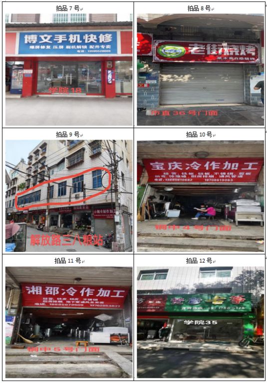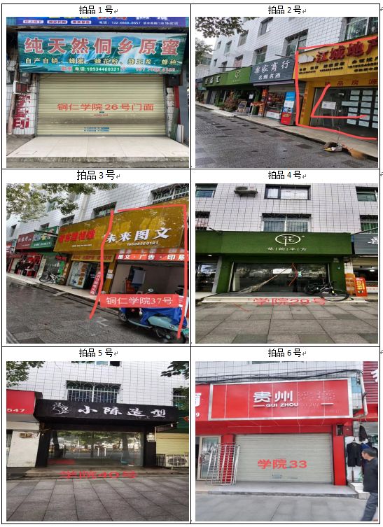 拍品2號至6號標的:位于清水大道銅仁附中對面,面積均為:27.5㎡,租賃期均為3年(2023年9月1日至2026年8月31日),附近有車站、醫(yī)院、銀行、酒店、超市、學校等,交通便利,人流量大。