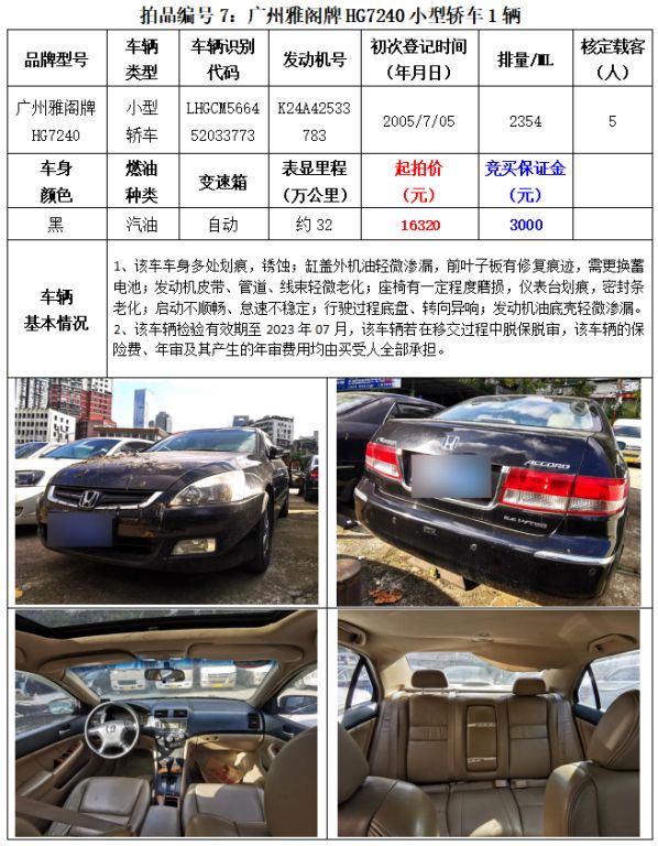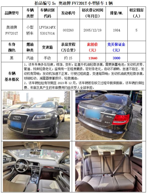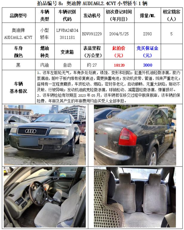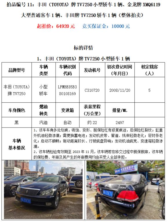 5、繳納競(jìng)買保證金的截止時(shí)間為:2023年8月25日中午12:00止,競(jìng)買保證金到賬情況以到貴州春秋拍賣有限責(zé)任公司賬戶顯示為準(zhǔn)。