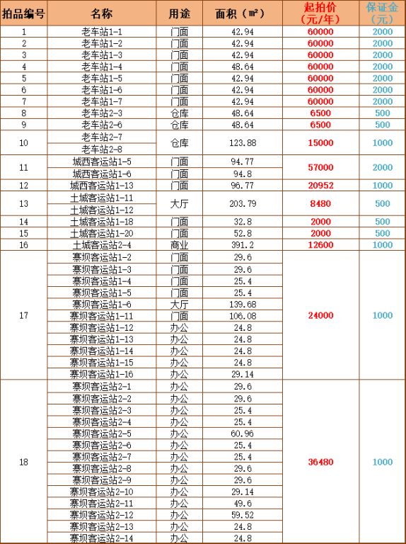 【已結束】習水縣老車站、城西客運站、土城客運站、寨壩客運站資產拍賣公告
