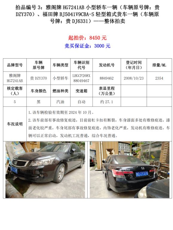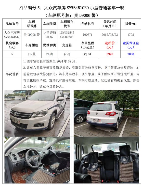 【已結(jié)束】銅仁市10輛機動車拍賣公告