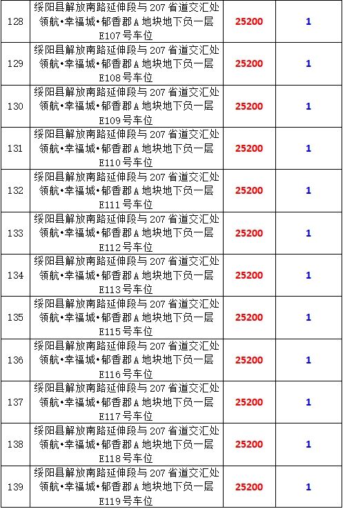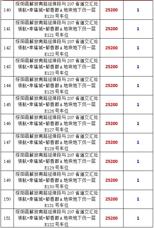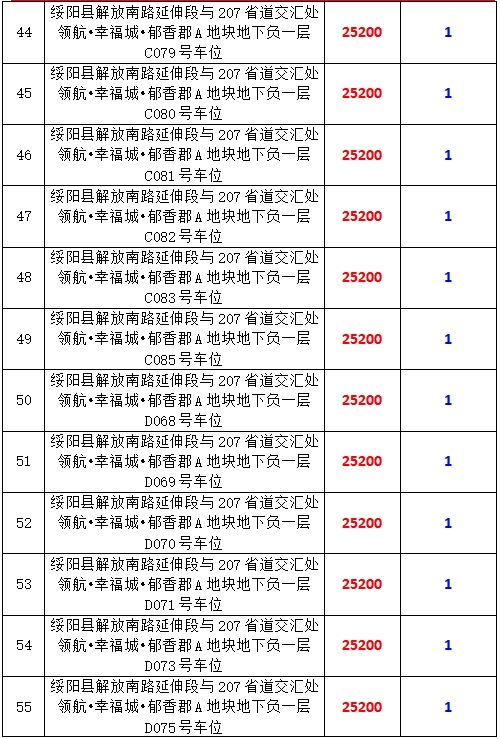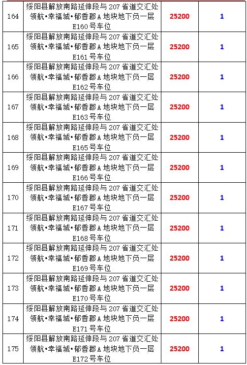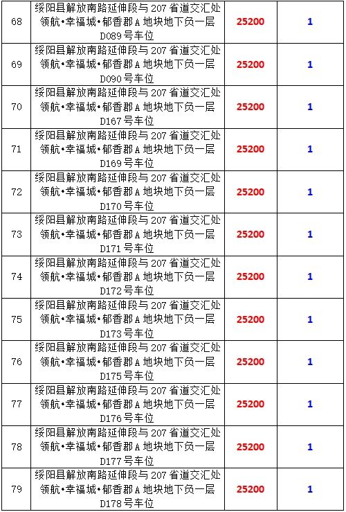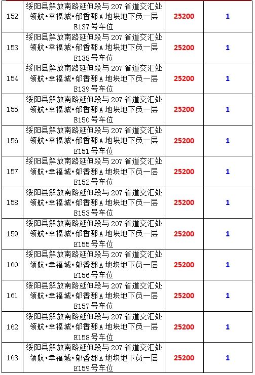 1、標(biāo)的坐落于綏陽縣解放南路延伸段與207省道交匯處領(lǐng)航?幸福城?郁香郡A地塊地下負(fù)一層。標(biāo)的總數(shù)為170個(gè)車位,水電設(shè)施齊全。