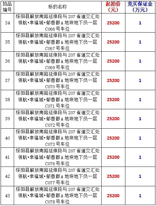 6、綏陽縣解放南路延伸段與207省道交匯處領(lǐng)航?幸福城?郁香郡A地塊地下負(fù)一層170個(gè)車位,起拍價(jià):25200元/個(gè),競買保證金:1萬元/個(gè)。