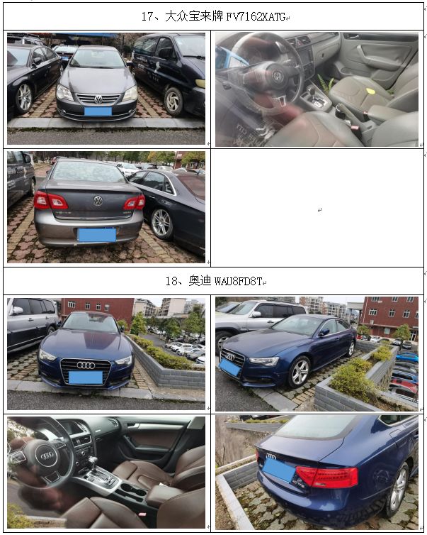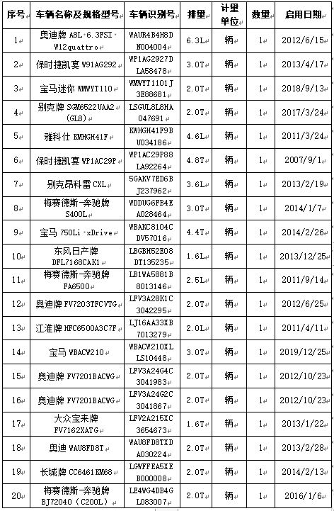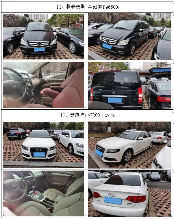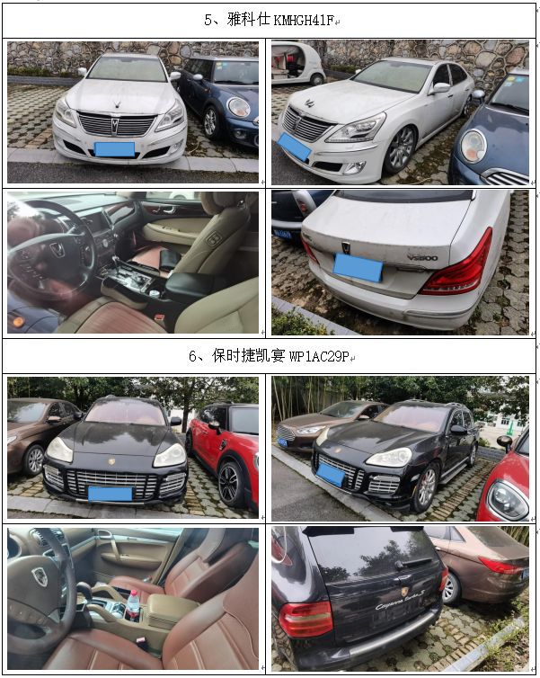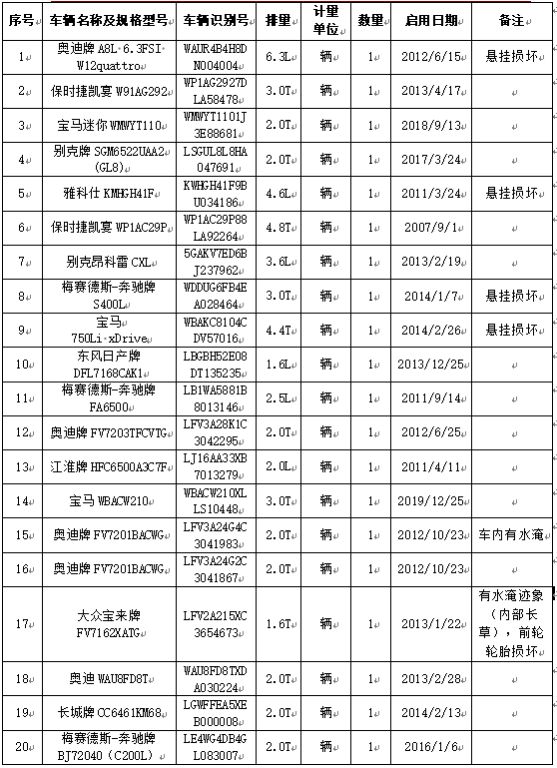 拍品編號1:保時捷凱宴、寶馬、梅賽德斯-奔馳牌、奧迪、別克、雅科仕、東風(fēng)日產(chǎn)牌、江淮牌、大眾寶來牌、長城牌等車輛,共計20輛(整體拍賣)