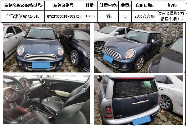 拍品編號2:寶馬迷你WMWZF310報廢車輛一輛(注:該車輛為報廢車輛,意向競買人需提供相應(yīng)競買資質(zhì)),起拍價:2000元,競買保證金:1000元。