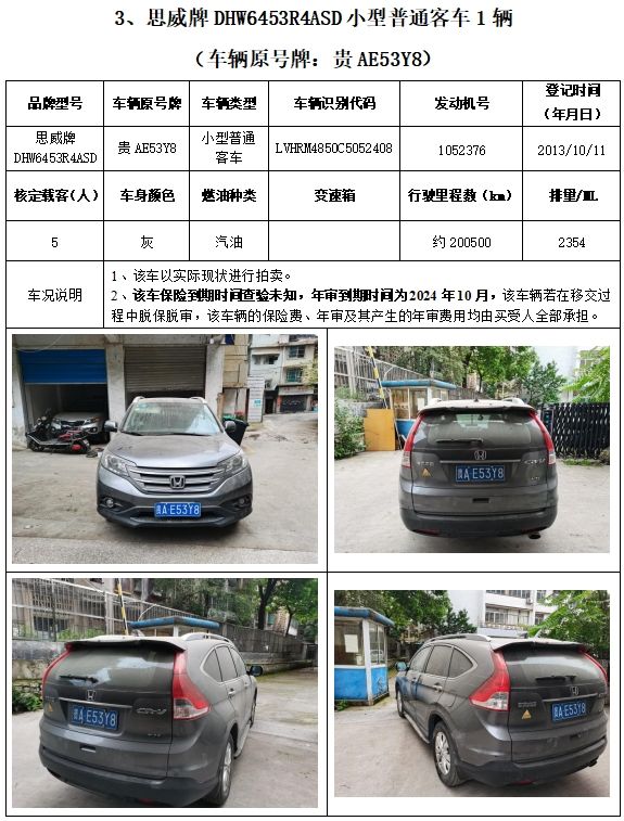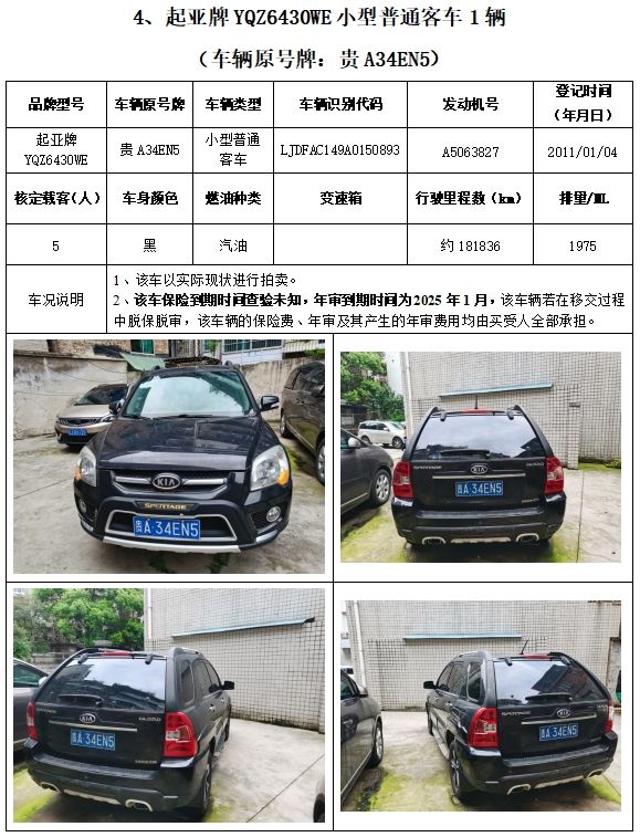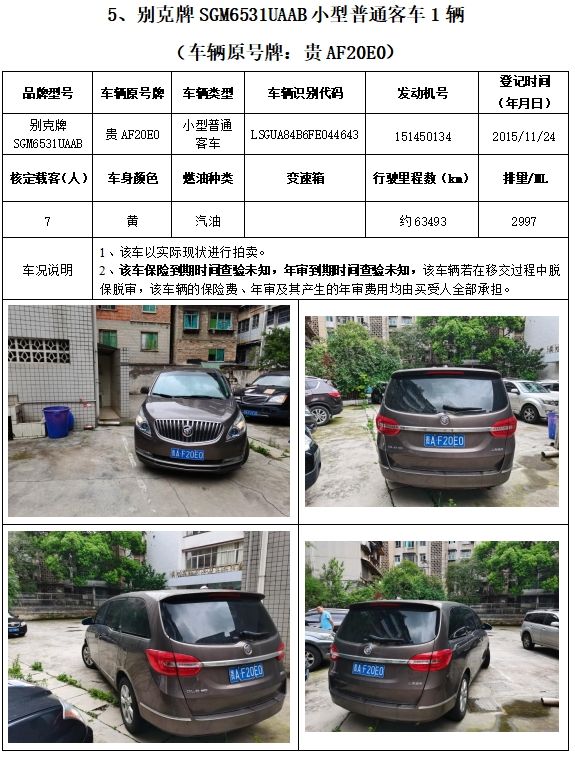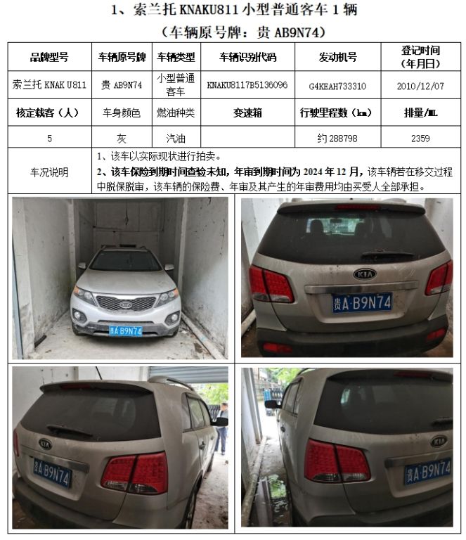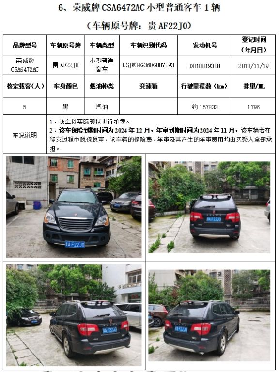 2、榮威牌、別克牌、起亞牌、思威牌、長(zhǎng)城牌、索蘭托牌車輛,共計(jì)6輛,整體拍賣。