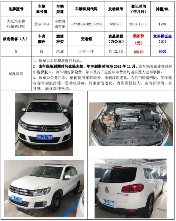 【11月28日】大眾牌、豐田牌、金龍牌等機(jī)動車拍賣公告
