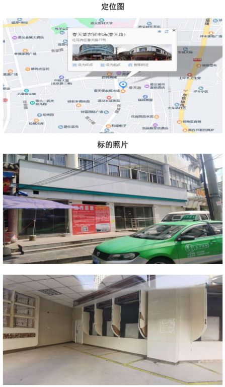 1、該標(biāo)的位于遵義市紅花崗區(qū)大興路碧興商住樓負(fù)一層,所在宗地四至為東臨大興路,南臨其他建設(shè)用地,西、北臨小路,混合結(jié)構(gòu)房屋,外墻刷防水涂料,水泥地面,白灰墻。建筑面積:777.57㎡,規(guī)劃用途為車庫(kù),土地使用權(quán)分?jǐn)偯娣e:73.79㎡,地類(用途)為車庫(kù),使用權(quán)類型為作價(jià)出資,終止日期為2058年12月15日。