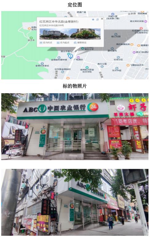 1、該標(biāo)的位于貴州省遵義市紅花崗區(qū)中華南路群力大廈1層,東臨中華南路,其余三面臨其他物業(yè)地塊,周邊商業(yè)氛圍濃重,交通便利,水、電設(shè)施齊全。標(biāo)的按照銀行營(yíng)業(yè)點(diǎn)進(jìn)行過(guò)簡(jiǎn)單裝修。