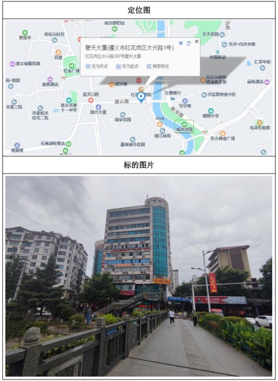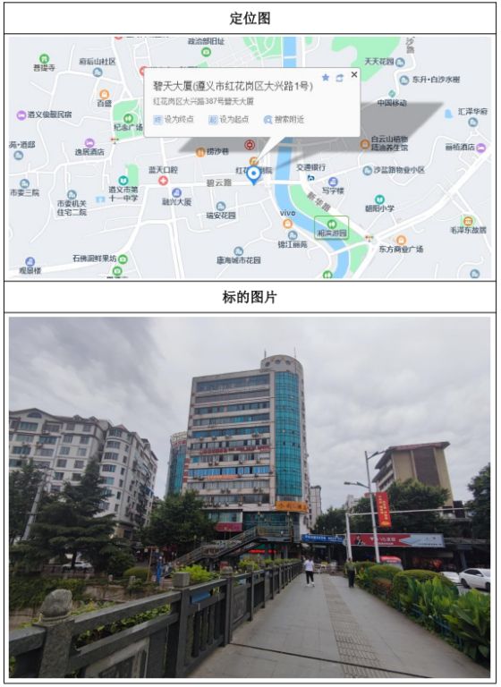 10、遵義市紅花崗區(qū)大興路1號(hào)碧天大廈5層,建筑面積分別為:221.05㎡、335.65㎡;