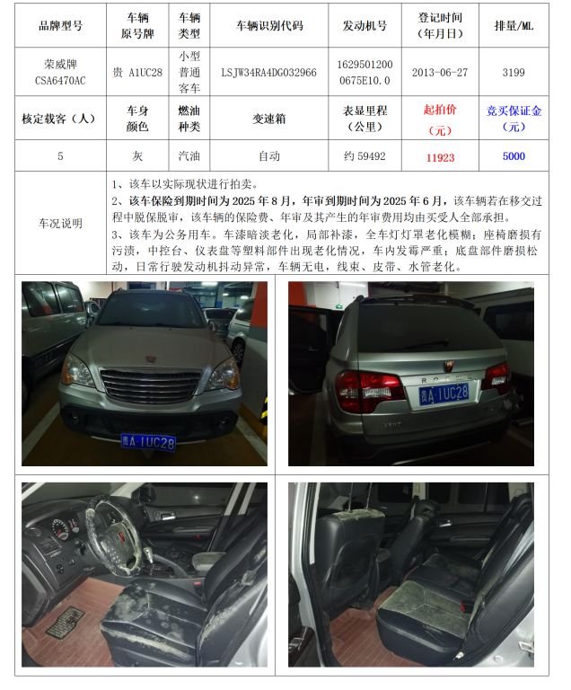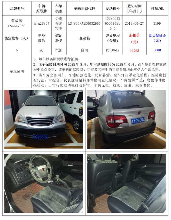 拍品編號3:榮威牌CSA6470AC小型普通客車1輛